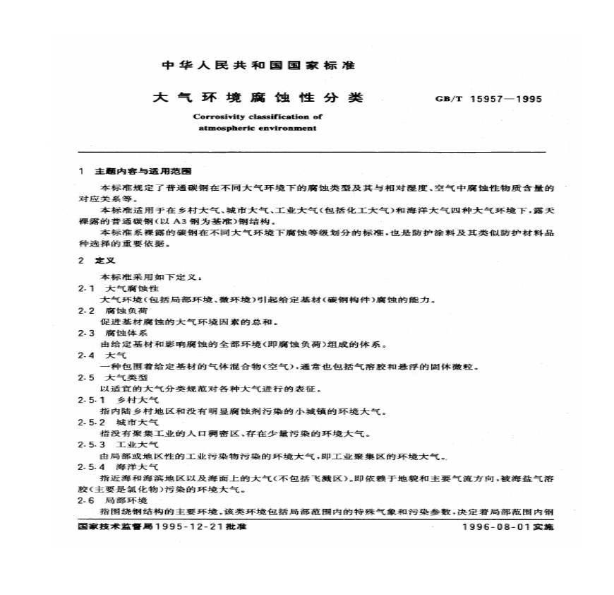 > GB_T15957-1995《大气环境腐蚀性分类》