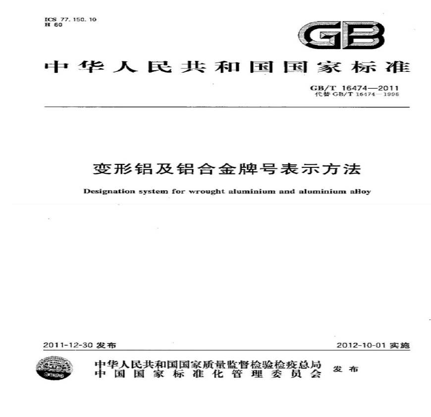 > GBT 16474-2011 变形铝及铝合金牌号表示方法