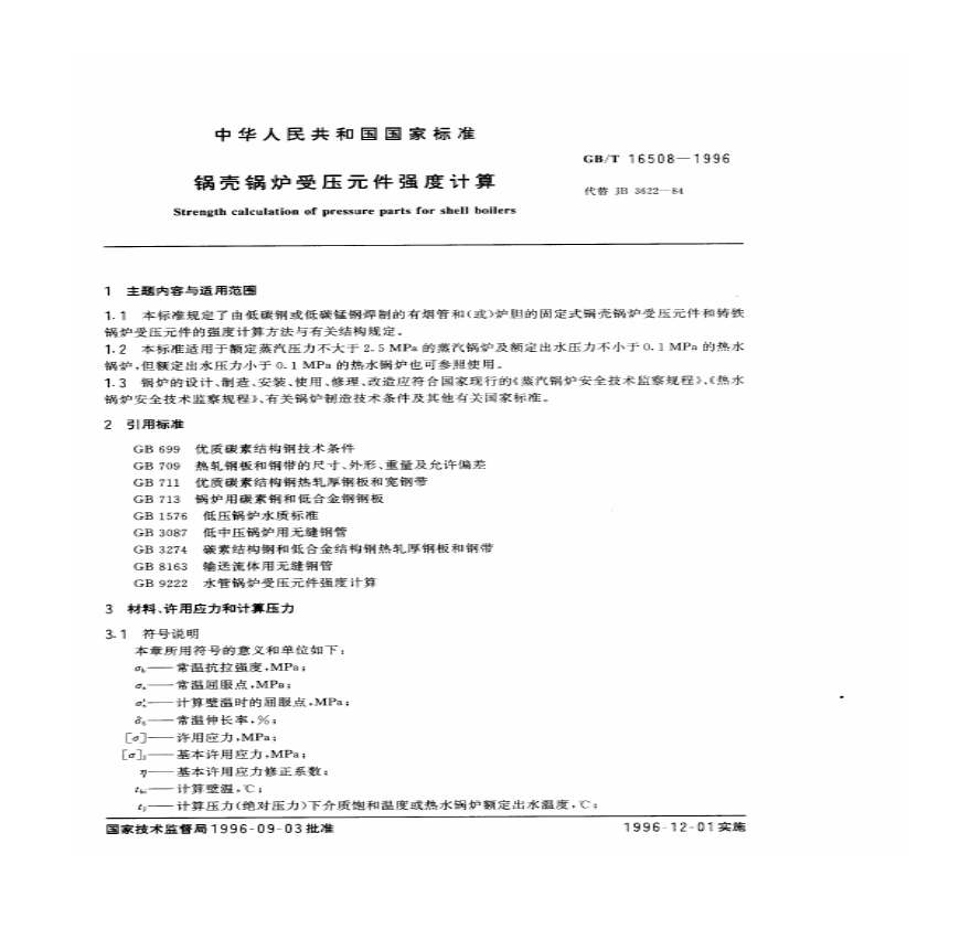 > GB T16508-1996 锅壳锅炉受压元件强度计算