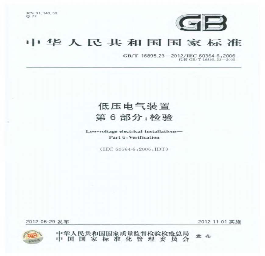 GBT16895.23-2012低压电气装置 第6部分 检验.pdf 免费下载