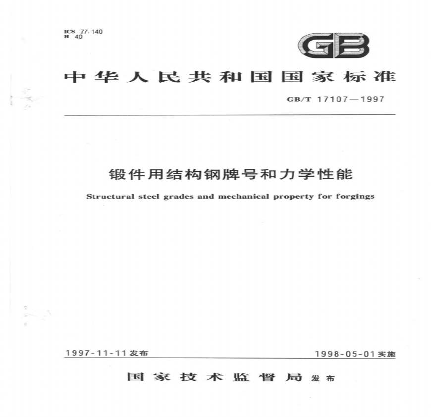 GB/T 17107-1997锻件用结构钢牌号和力学性能资料下载,喜欢的朋友可以下载收藏!