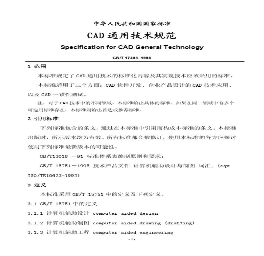 GB-T-17304-1998CAD通用技术规范资料下载,喜欢的朋友可以下载收藏!