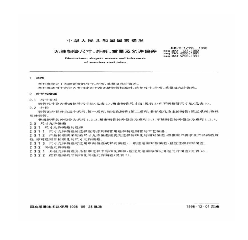 GB-T 17395-1998 无缝钢管尺寸、外形、重量及允许偏差.pdf 免费下载