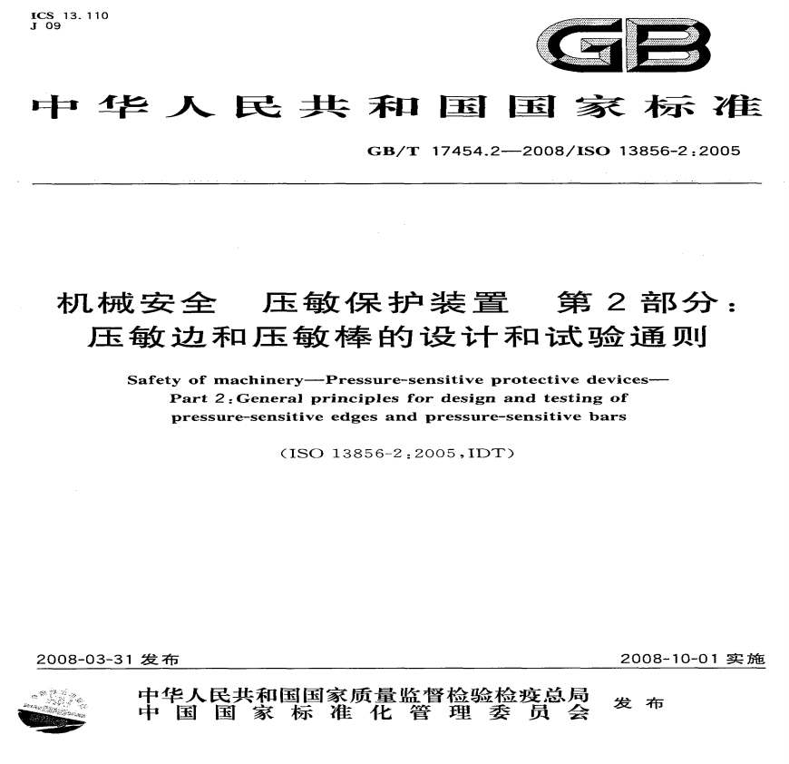 GBT 17454.2-2008 机械安全 压敏保护装置 第2部分:压敏边和压敏.pdf 免费下载