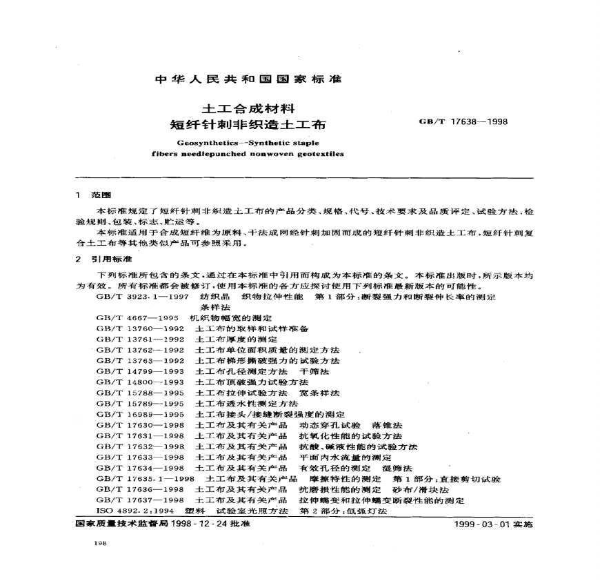 GB T17638-1998土工织物标准资料下载,喜欢的朋友可以下载收藏!