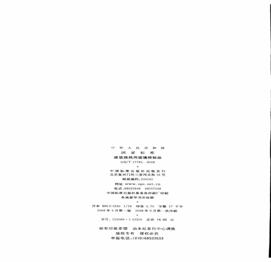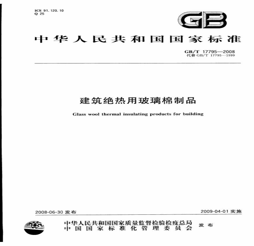 > GB T17795-2008建筑绝热用玻璃棉制品