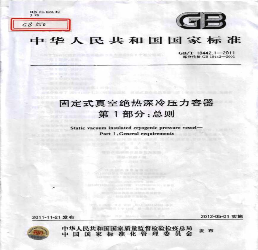 GBT 18442-2011固定式真空绝热深冷压力容器资料下载,喜欢的朋友可以下载收藏!