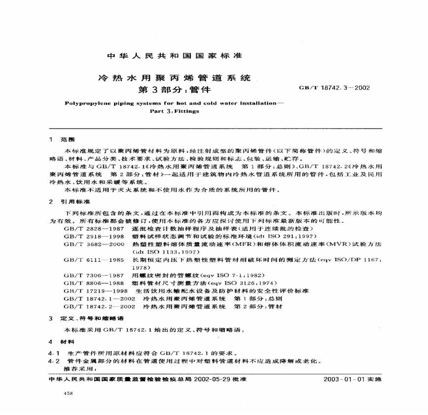 GBT18742.3-2002冷热水用聚丙烯管道系统 第3部分:管件.pdf 免费下载