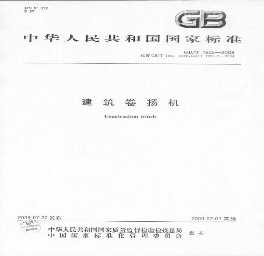 GB-T 1955-2008 建筑卷扬机.pdf 免费下载