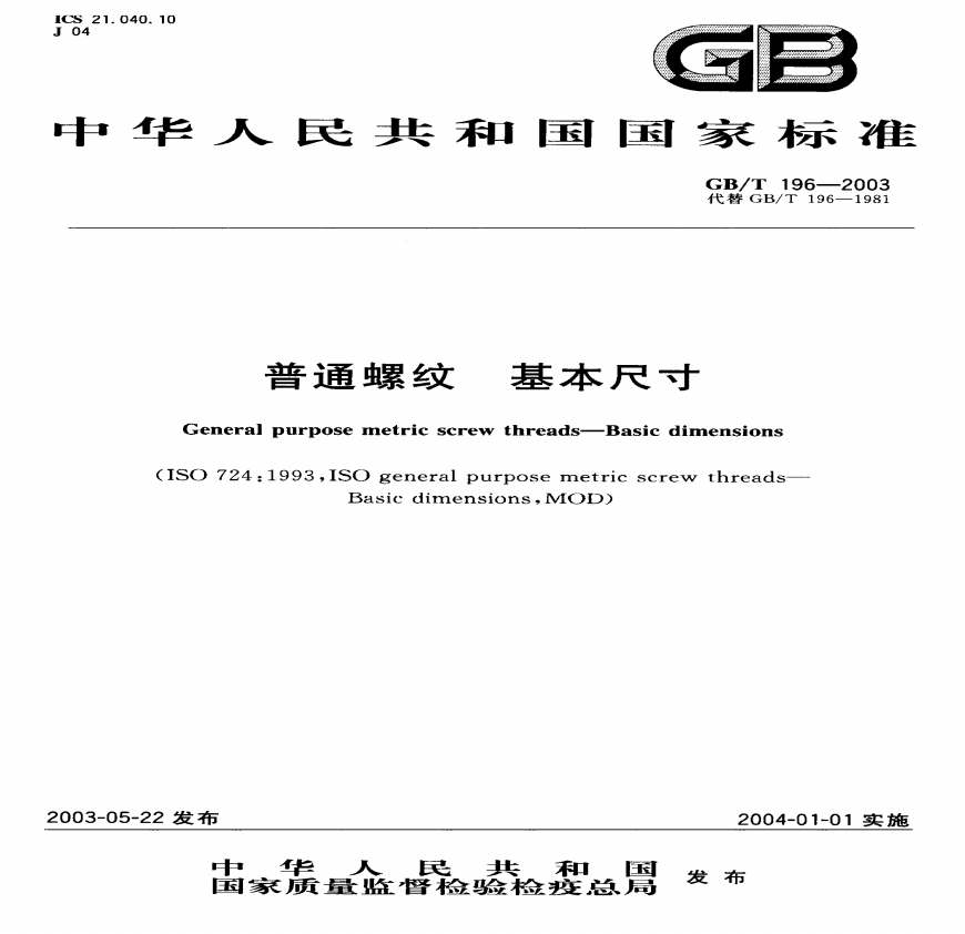 GBT196-2003普通螺纹 基本尺寸资料下载,喜欢的朋友可以下载收藏!