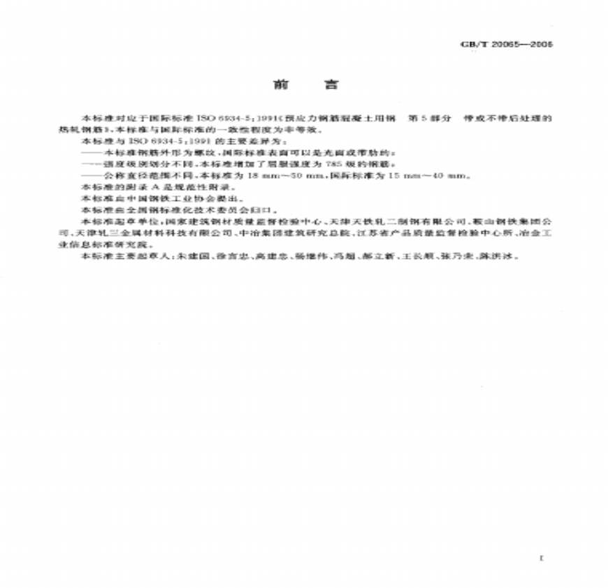 国家标准(GB)本标准规定了预应力混凝土用螺纹钢筋(也称精轧螺纹钢筋,以下简称钢筋)的术语和定义、强度等级代号、尺寸、外形、重量及GBT 学习资料页 ICSH通黔中华人民共和国国家标准SrS 学习资料页其他人还搜了b预应力管桩 预应力混凝土用螺纹钢 b预应力混凝土用钢丝 b预拌混凝土标准最新 b螺纹 b预拌混凝土 螺纹拧入深度标准b 预应力施工规范b 混凝土通用规范 b混凝土实心砖 b预拌混凝土 b预拌砂浆 梯形螺纹标准b 预拌混凝土最新国家标准 预拌混凝土b下载 混凝土规范最新版 水泥最新国家标准b b预应力混凝土管 预应力混凝土用钢丝b 混凝土规范最新版 b预拌砂浆国家标准 预拌混凝土b b预拌混凝土标准 预拌砂浆标准b 下载_文档下载 rbrrrrrISO 下载_文档下载 rbrrrrrISO