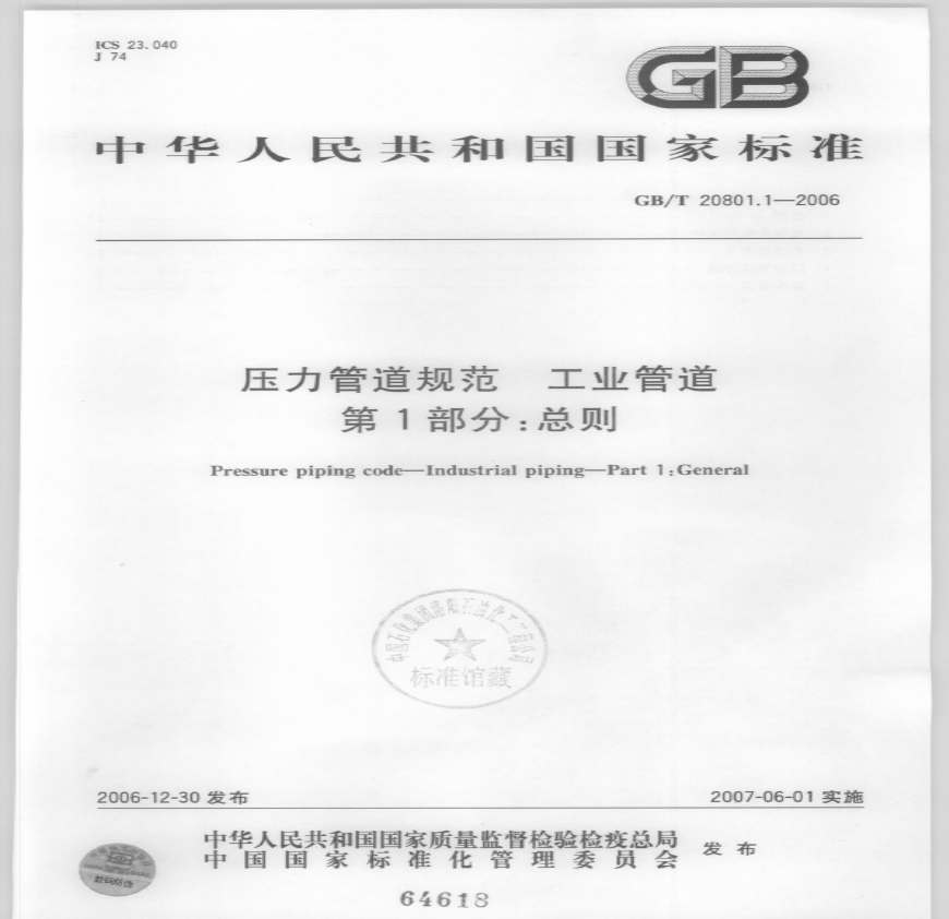 GBT 20801.1-2006 压力管道规范 工业管道 第1部分:总则资料下载,喜欢的朋友可以下载收藏!