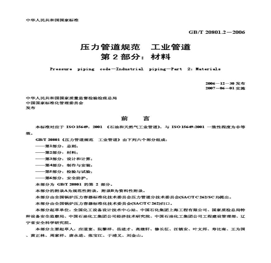 GBT 20801.2-2006压力管道规范 工业管道 第2部分:材料.pdf 免费下载