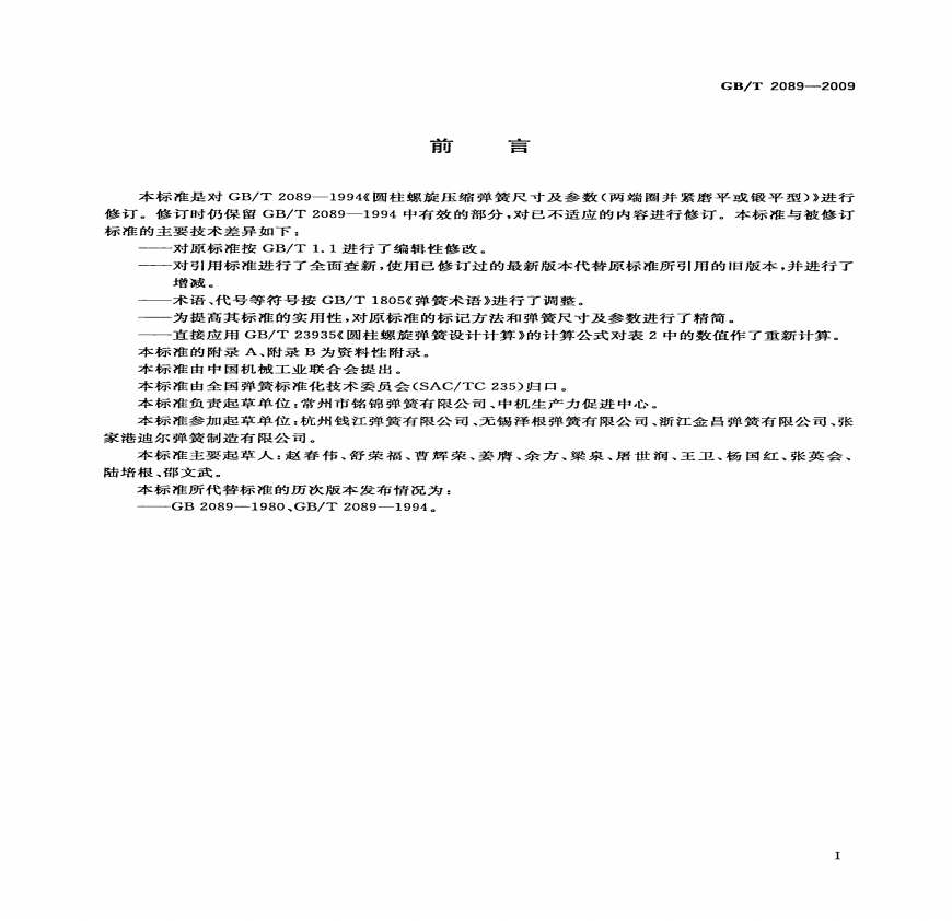 GBT 2089-2009 普通圆柱螺旋压缩弹簧尺寸及参数(.pdf 免费下载