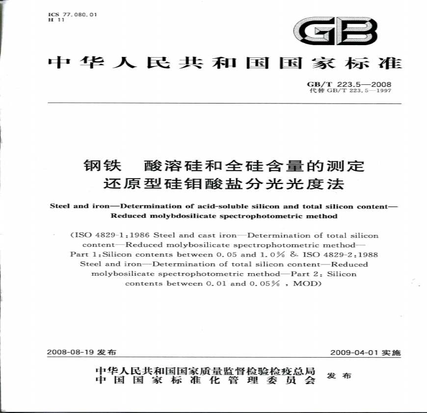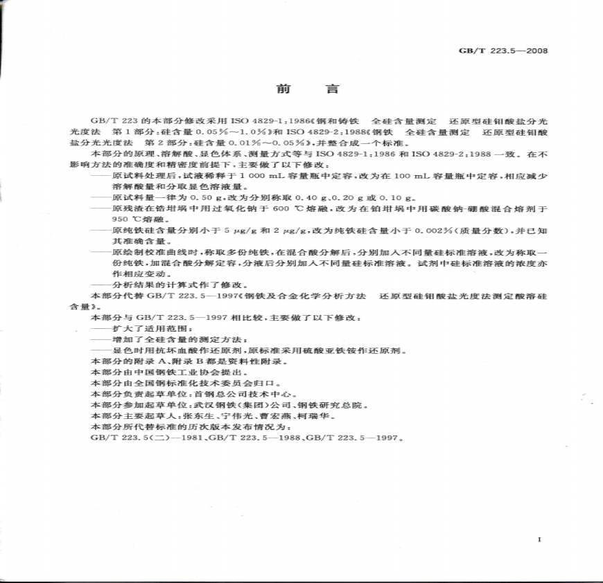 钢铁酸溶硅和金硅含量的测定还原则硅钼酸盐分光光度法 变更比对分析 和GBT?变更比对分析赵秀红(北京福田康明斯发动机有限公司,北京)年 。