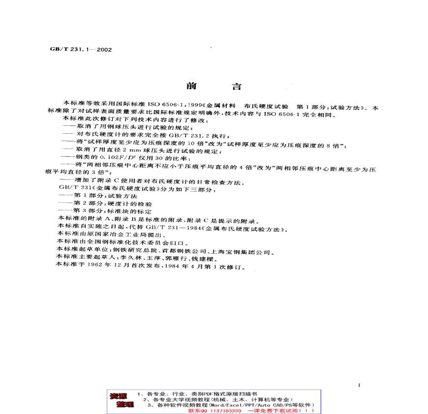 GBT 231.1-2002金属布氏硬度试验 第1部分试验方资料下载,喜欢的朋友可以下载收藏!