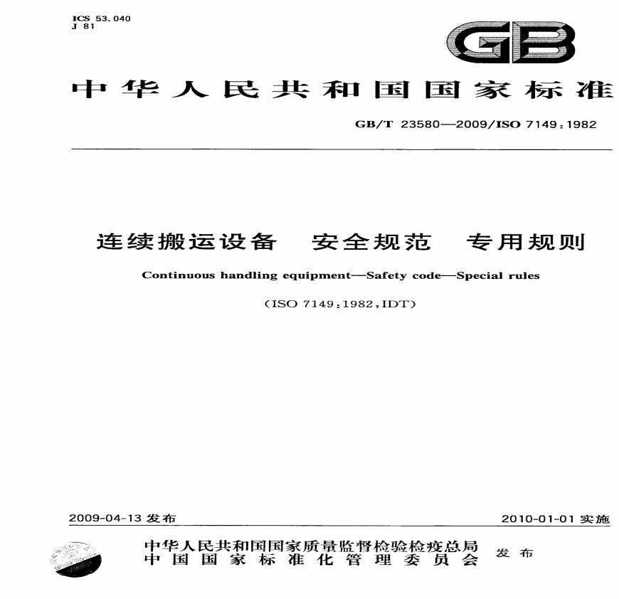 GBT 23580-2009 连续搬运设备 安全规范 专用规则资料下载,喜欢的朋友可以下载收藏!