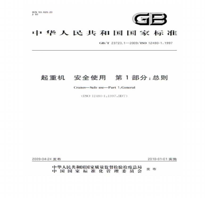 GBT 23723.1-2009 起重机 安全使用 第1部分:总则资料下载,喜欢的朋友可以下载收藏!