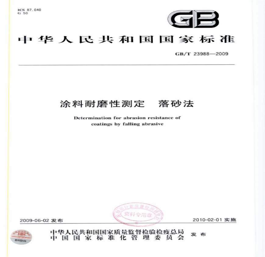 > GB-T 23988-2009 涂料耐磨性测定 落砂法