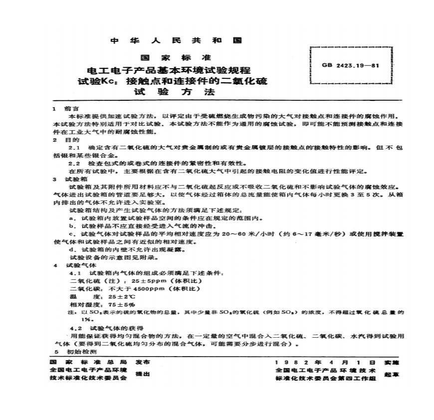 标准号: 采 中文标准名称:环境试验第部分:试验方法试验K:接触点和连接件的二氧化硫试验 英文标准名称:Er T
