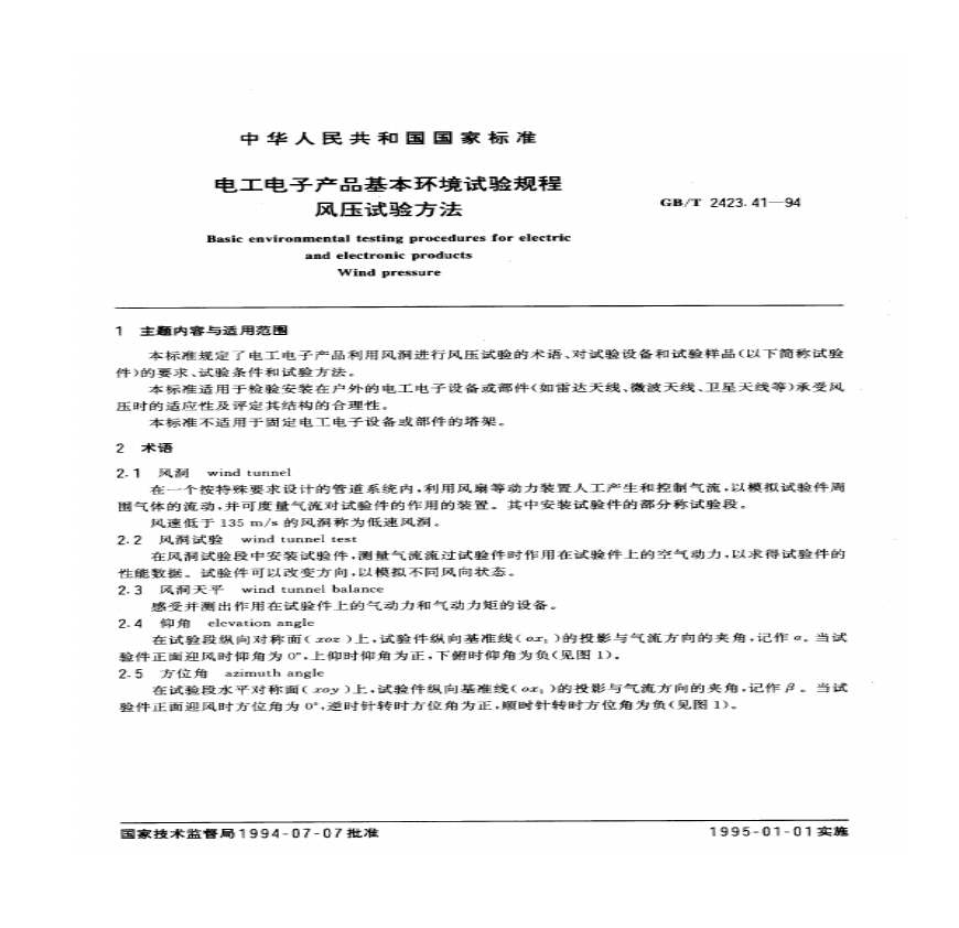 > GBT 2423.41-1994 电工电子产品基本环境试验规程 风压试验方法