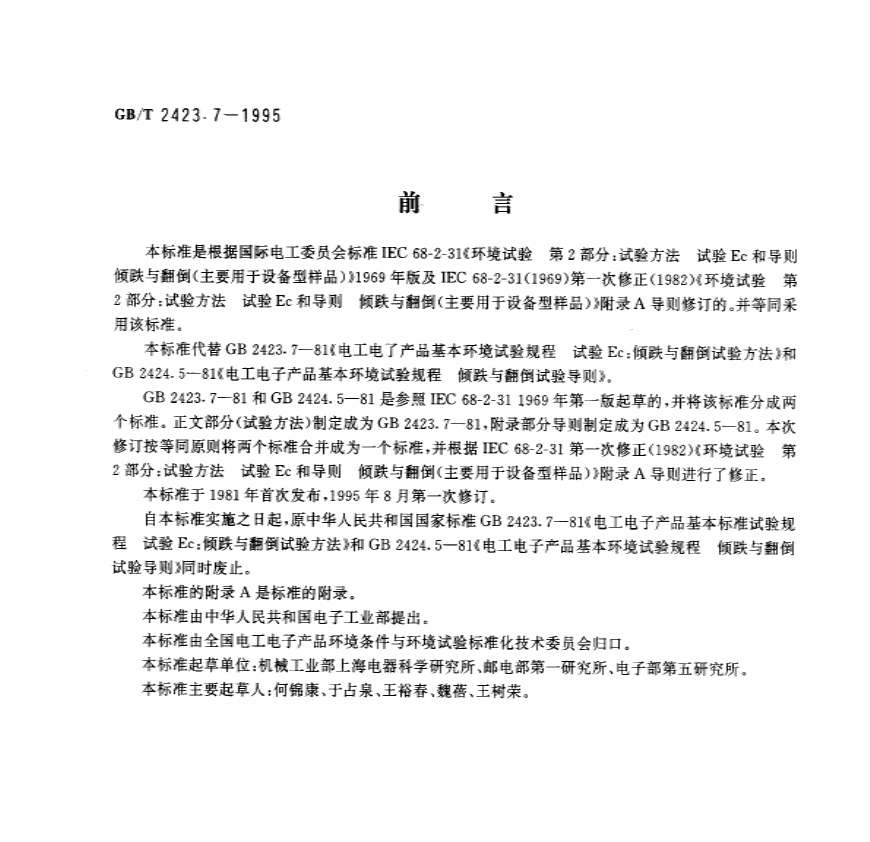 国家标准 :试验方法试验E和导则:倾跌与翻倒 (主要用于设备型样品),标准下载无需注册即可下载标准下载