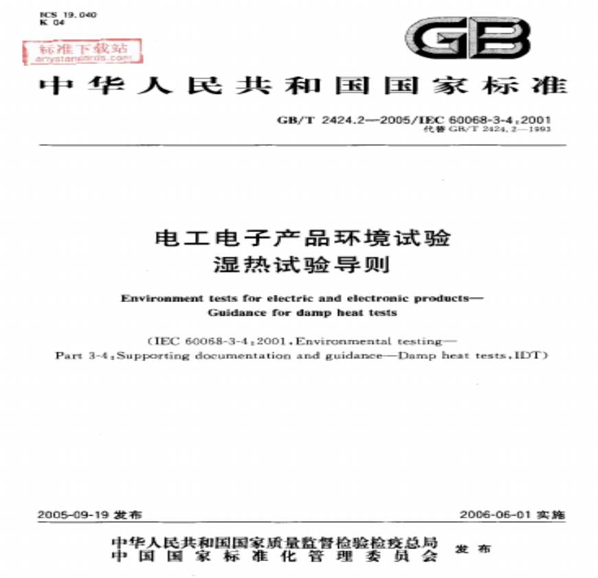 > GBT 2424.2-2005 电工电子产品环境试验 湿热试验导则