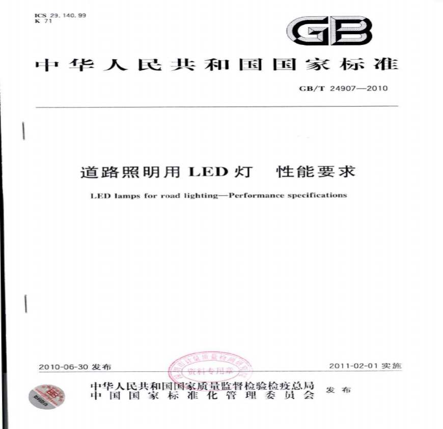 GB-T 24907-2010 LED灯 性能要求资料下载,喜欢的朋友可以下载收藏!