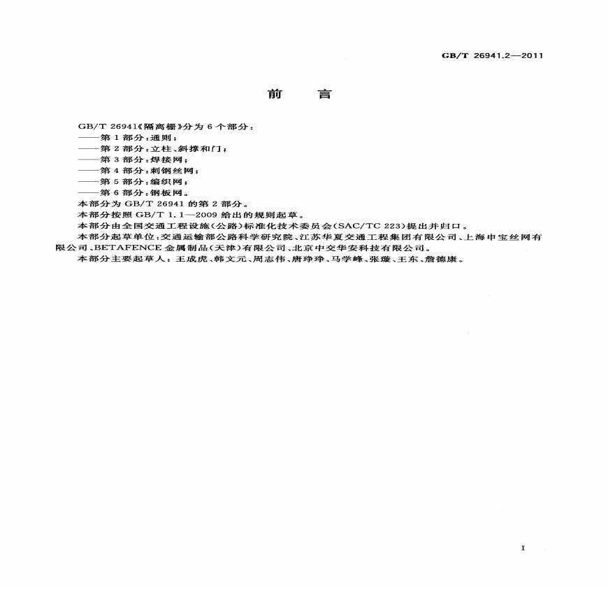 隔离栅第部分:立柱、斜撑和门《 隔离栅第部分:立柱、斜撑和门》GBT的本部分规定了隔离栅立柱、斜撑和门产品的分类、结构尺寸、技术要求、试验方法、检验规则、标志、包 隔离栅第部分:立柱、斜撑和门标准 学习资料页 标准资料WWWPVCOM标准资料WWWPVCOM标准资料WWWPVCOM标准资料WWWPVCOM标准资料WWWPVCOM标准资料WWWPVCOM标准资料WWWPV 学习资料页 内容主要包含:,∕隔离栅第部分:立柱、斜撑和门是由帮帮创意 r@ - 。