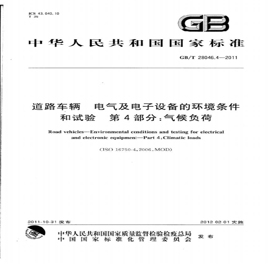 > GBT 28046.4-2011道路车辆 电气及电子设备的环境条件和试验 第4