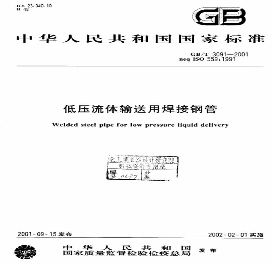 GBT3091-2001低压流体输送用焊接钢管资料下载,喜欢的朋友可以下载收藏!