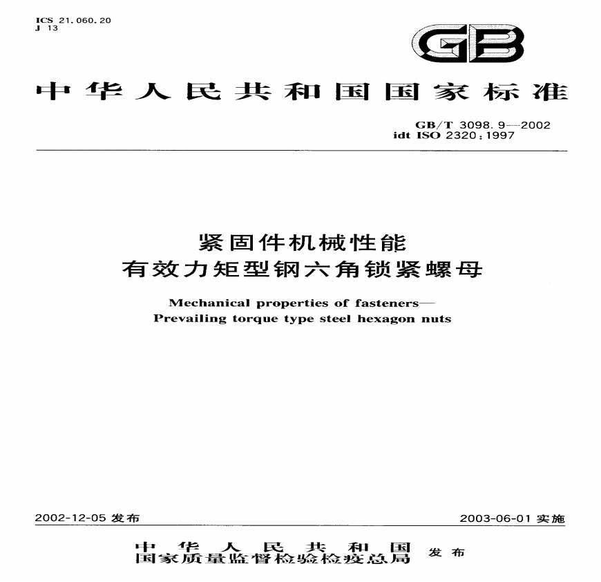 GB T3098.9-2002_紧固件机械性能_有效力矩型_钢六角锁紧螺母资料下载,喜欢的朋友可以下载收藏!