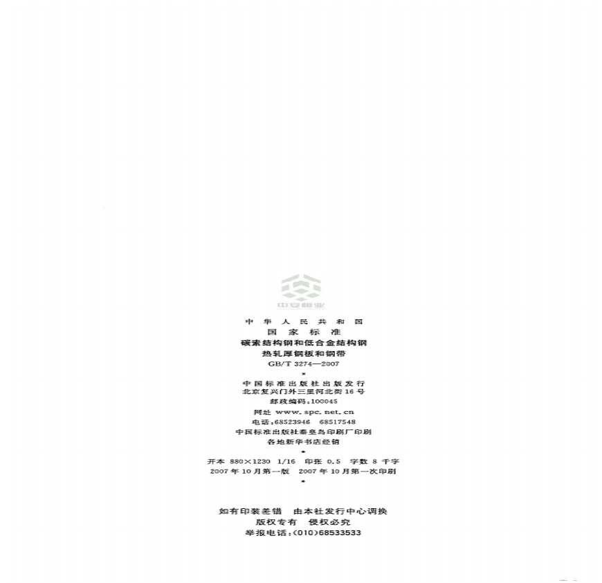 > GBT3274-2007碳素结构钢和低合金结构钢热轧厚钢板和钢带
