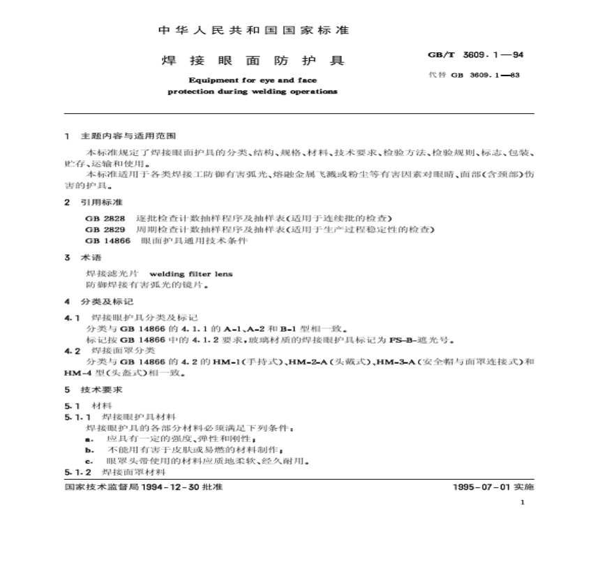 GB T 3609.1-1994焊接眼面防护具资料下载,喜欢的朋友可以下载收藏!