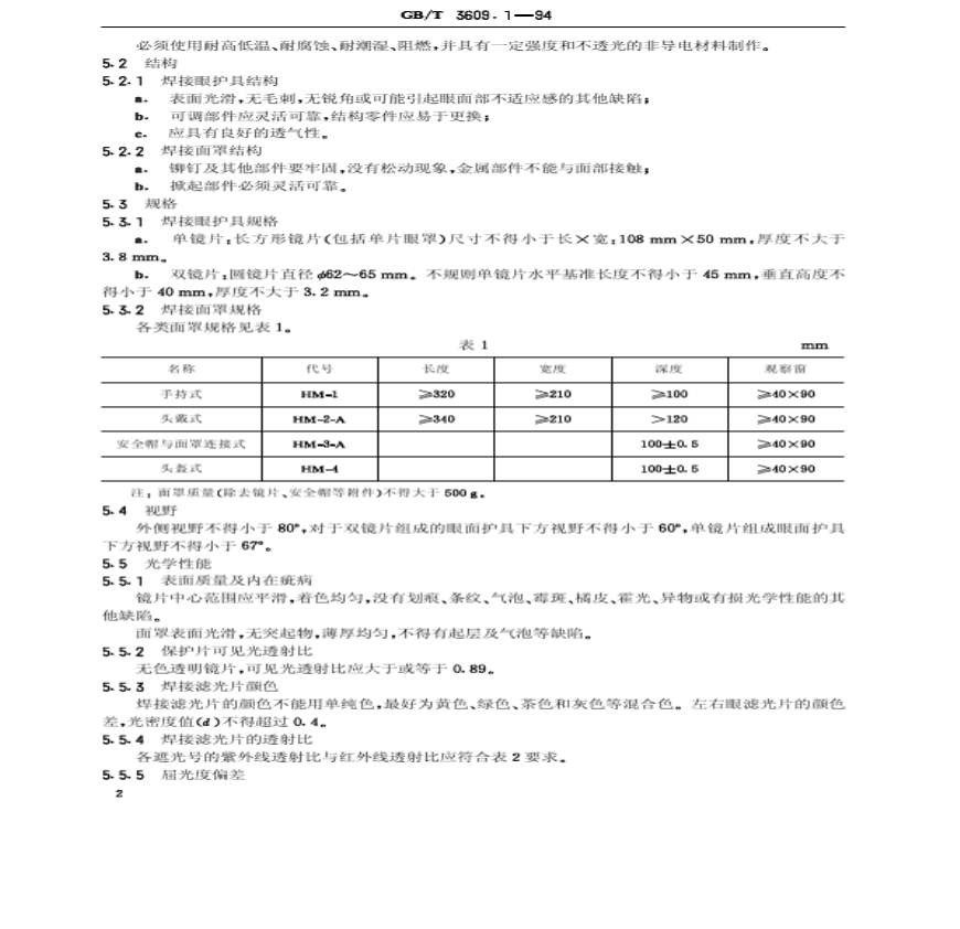 > GB T 3609.1-1994焊接眼面防护具