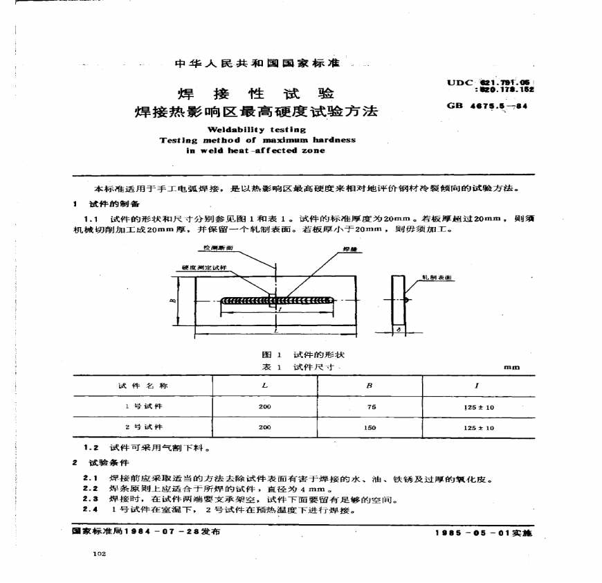 GBT4675.5-84焊接性试验 焊接热影响区最高硬度试验方法资料下载,喜欢的朋友可以下载收藏!