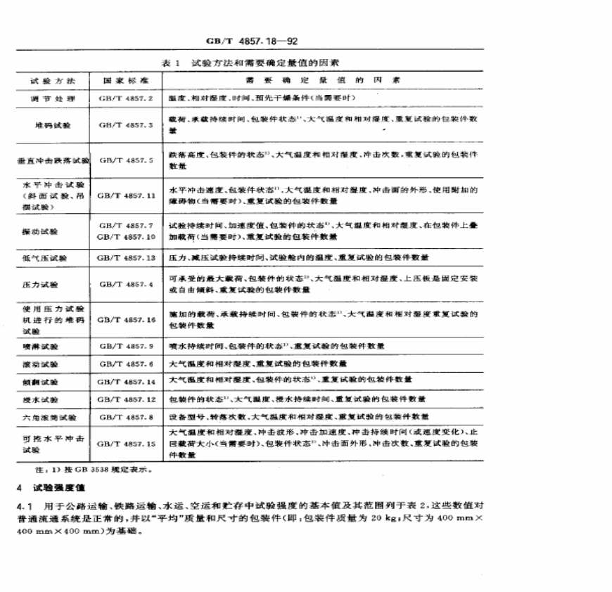 > GBT4857.18-1992包装运输包装件 编制性能试验大纲的定量数据