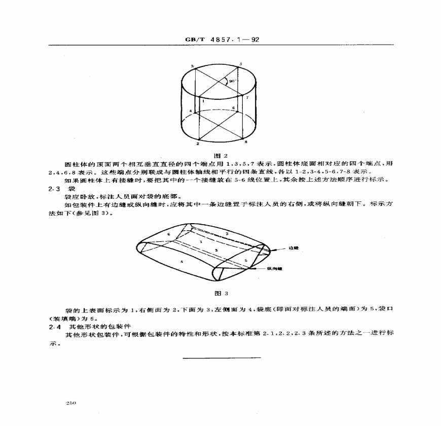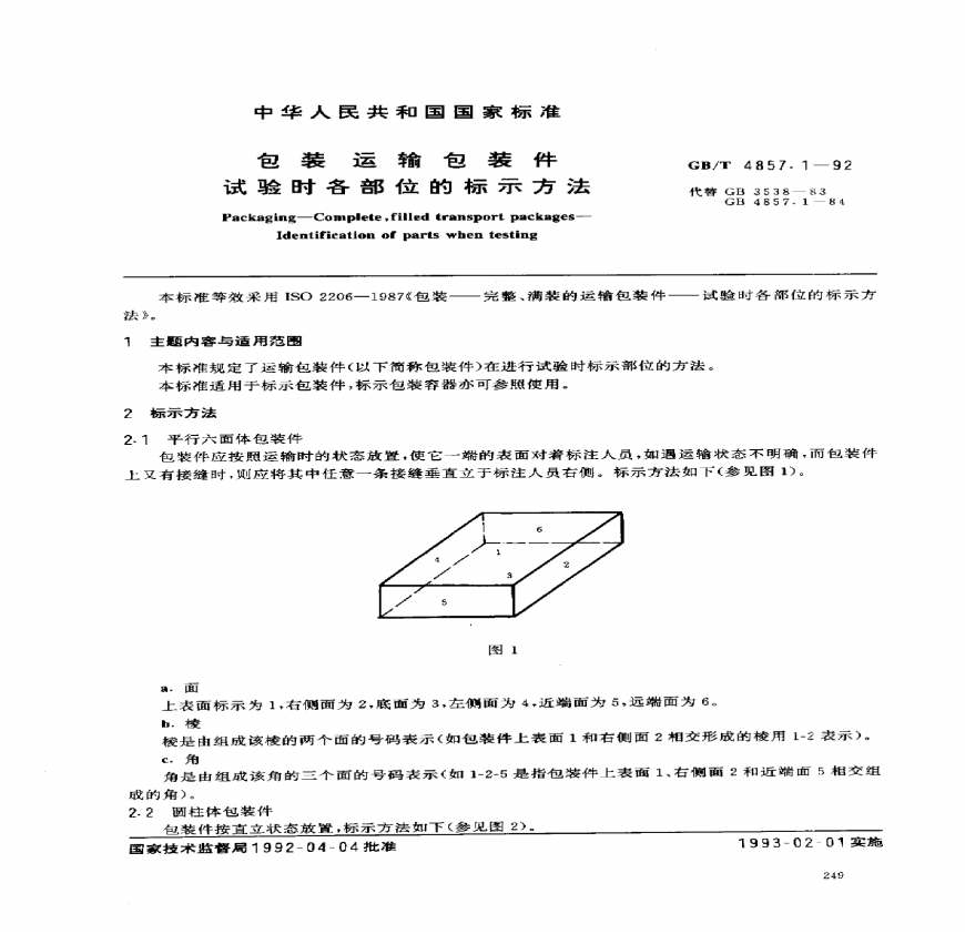 > GBT 4857.1-92 包装运输包装件 试验时各部位的标示方法