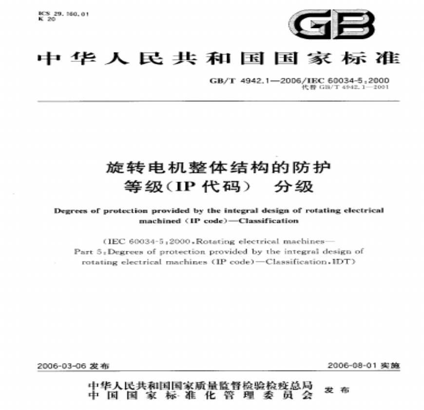 > GBT 4942.1-2006 旋转电机整体结构的防护等级(