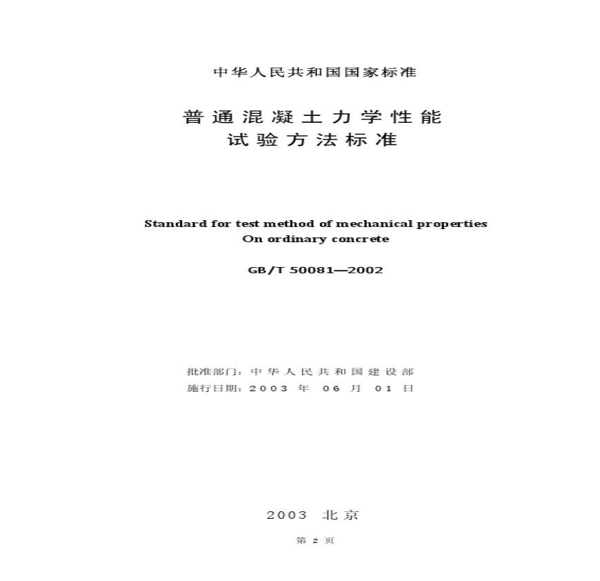 标准国家标准《 标准》本标准适用于工业与民用建筑以及一般构筑物中的普通混凝土力学性能试验包括抗压强度试验轴心抗压强度试验静力GBT 学习资料页 UDC 中华人民共和国国家标准 P ━ 标准Sr rrr O