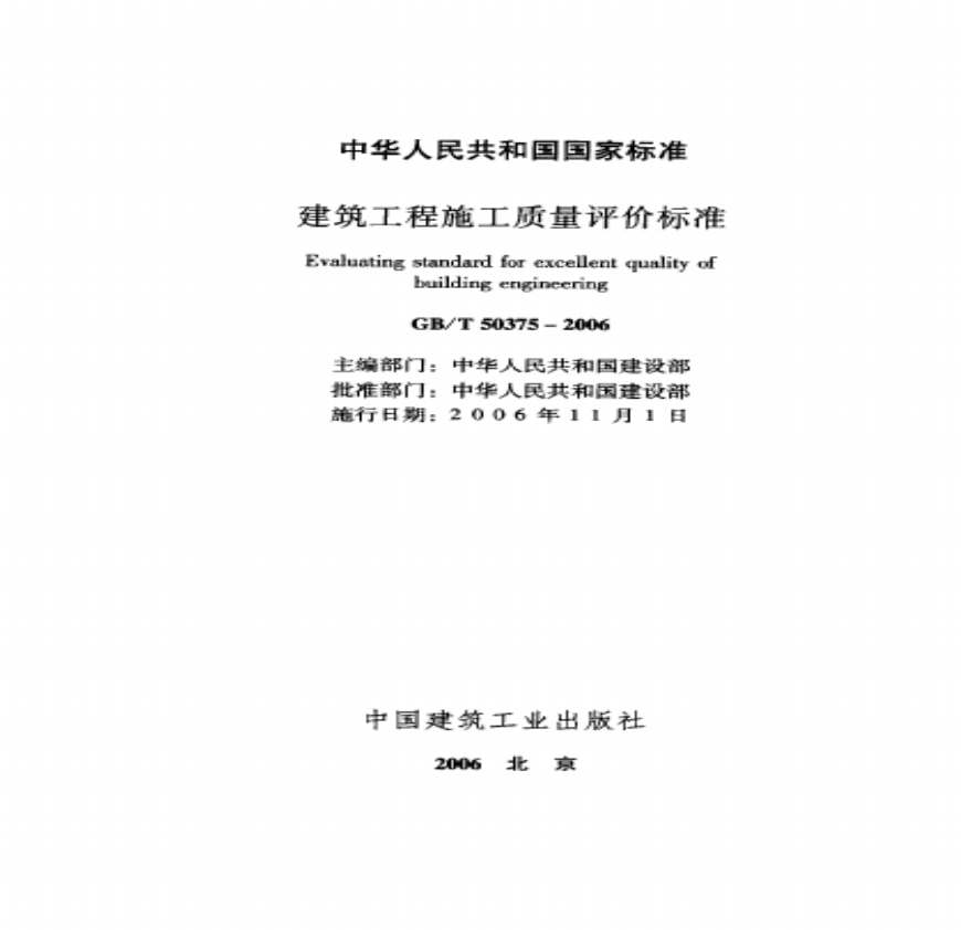 GBT50375-2006 建筑工程施工质量评价标准资料下载,喜欢的朋友可以下载收藏!