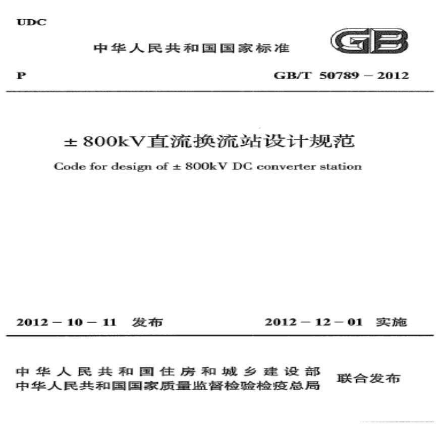 GBT 50789-2012 ±800kV直流换流站设计规范资料下载,喜欢的朋友可以下载收藏!