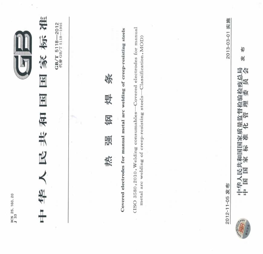 标准号: 采 中文标准名称:热强钢焊条 英文标准名称:Cr r r r rb-