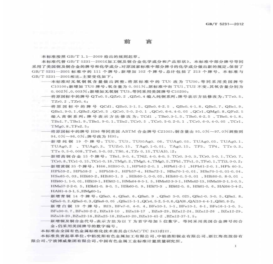 GBT 5231-2012 加工铜及铜合金牌号和化学成分.pdf 免费下载