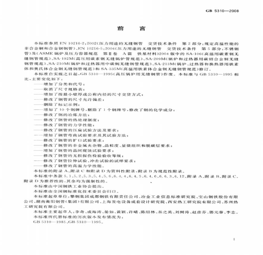 > GB T 5310-2008 高压锅炉用无缝钢管