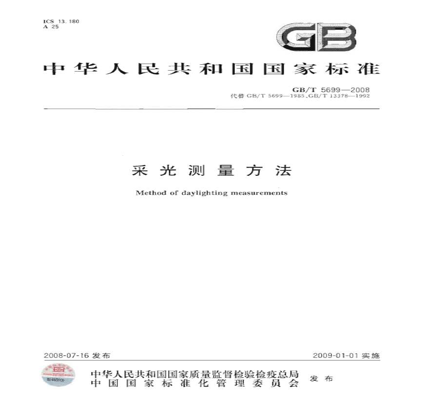 国标简介: 本标准规定了采光测量的仪器、采光采数、照度、亮度及材料光学参数的测量方法。