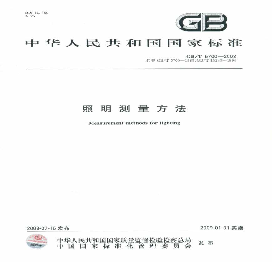 > GBT 5700-2008 照明测量方法
