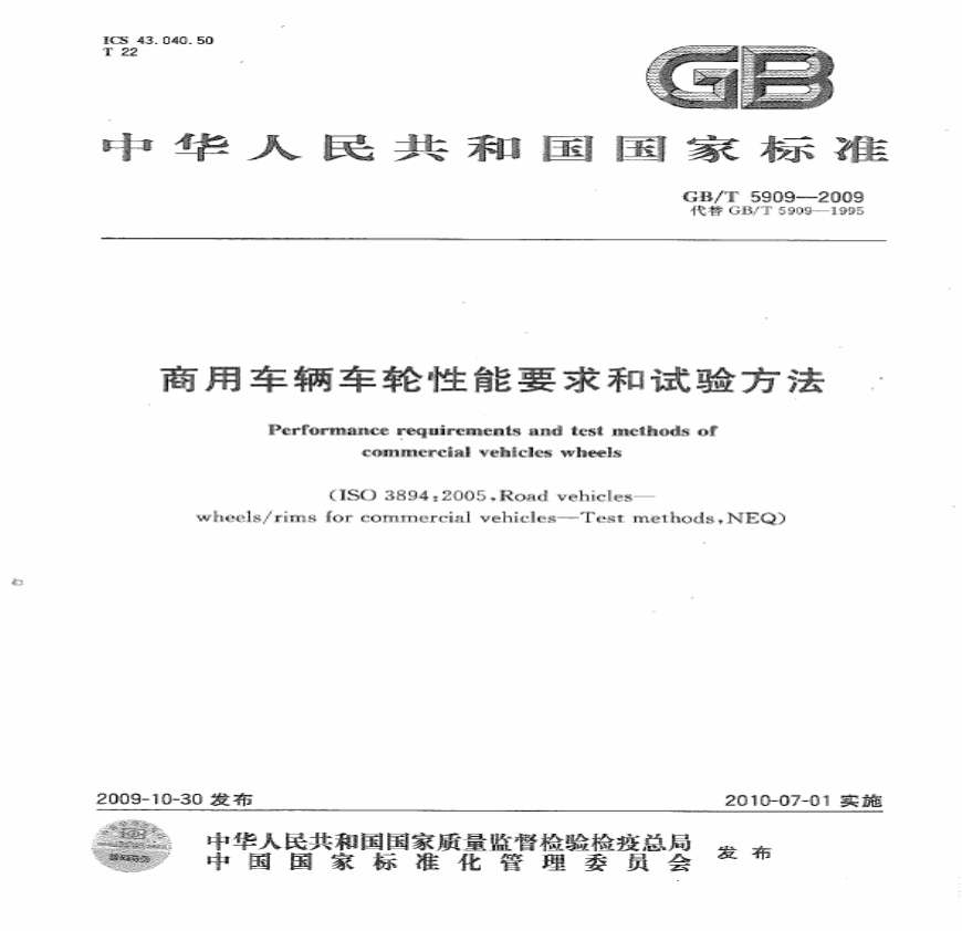 > GB T 5909-2009 商用车辆车轮性能要求和试验方法