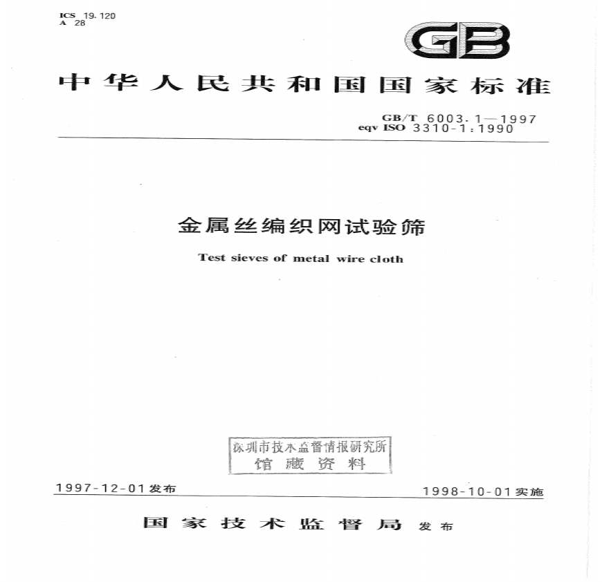 > GB-T6003.1-1997金属丝编织网试验筛[1]