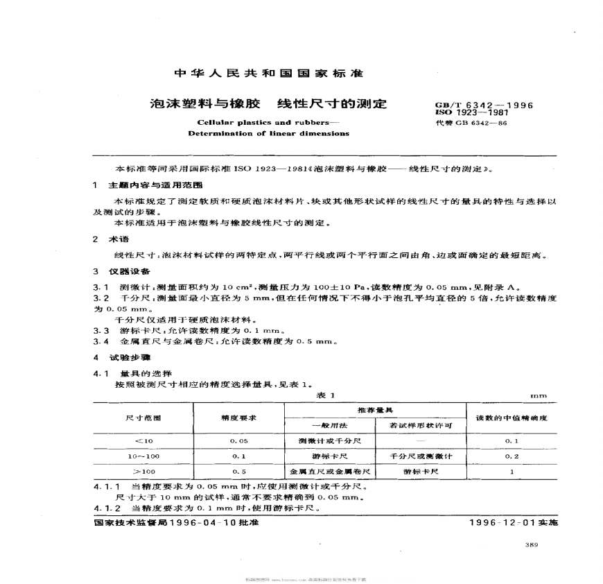 GBT6342-1996泡沫塑料与橡胶 线性尺寸的测定.pdf 免费下载